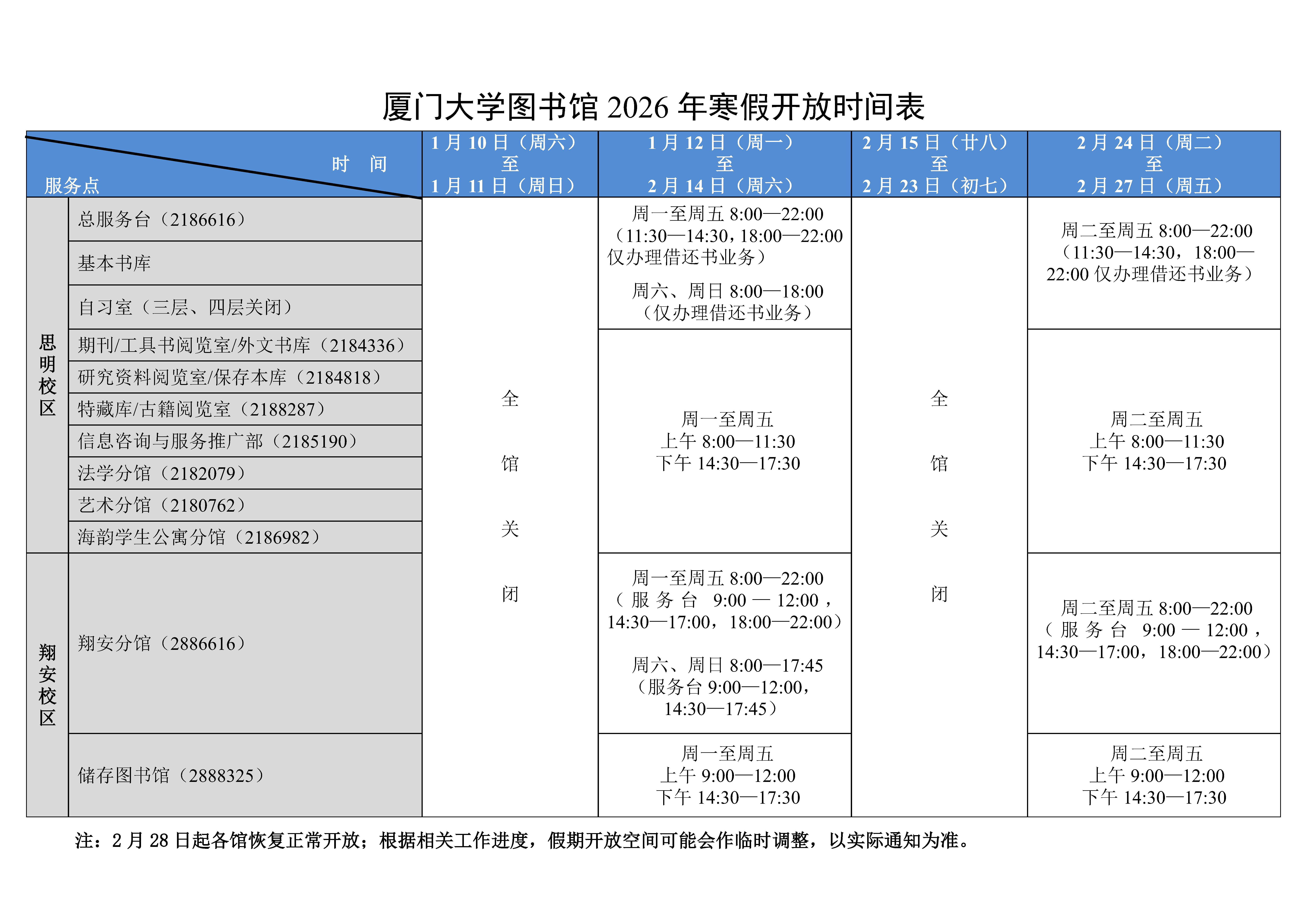 读者热线:0592-2186616(思明校区),0592-2886616(翔安校区)