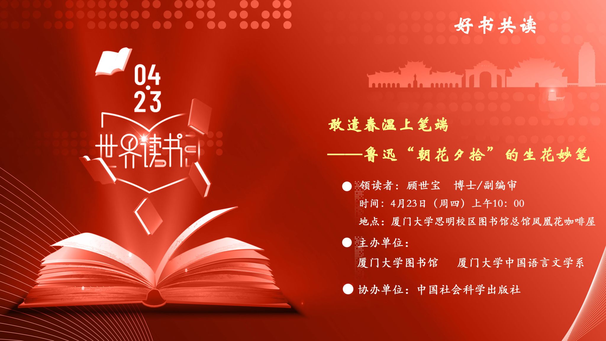 推进全员阅读,共建书香校园。在第31个世界读书日来临之际,为了进一步推动落实立德树人根本任务,营造爱读书、读好书、善读书的书香校园氛围,图书馆联合中国语言文学系、校工会、文科期刊中心等单位面向师生开展好书共读、学术出版规范讲座等主题活动,具体安排如下: