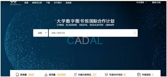 第一步:打开CADAL(大学数字图书馆国际合作计划)官网