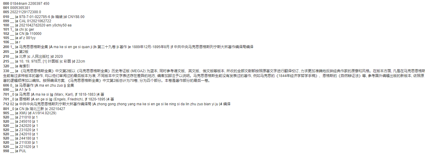 书目数据加工是图书馆文献资源建设的重要基础业务,数据质量直接影响到文献资源发现和利用效率。数据加工馆员根据行业标准和规范对文献进行详实、准确的著录、分类,提供出版信息、主题词、索书号等检索项,文献才能被有效地纳入各种馆藏揭示体系,从而方便读者有效利用。