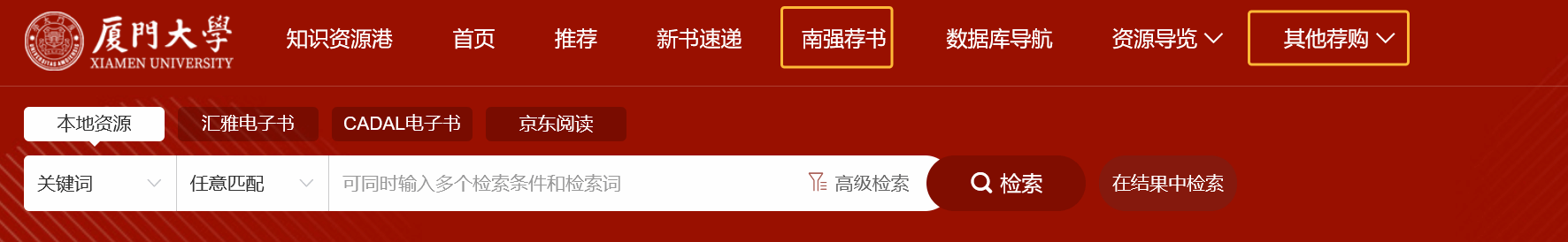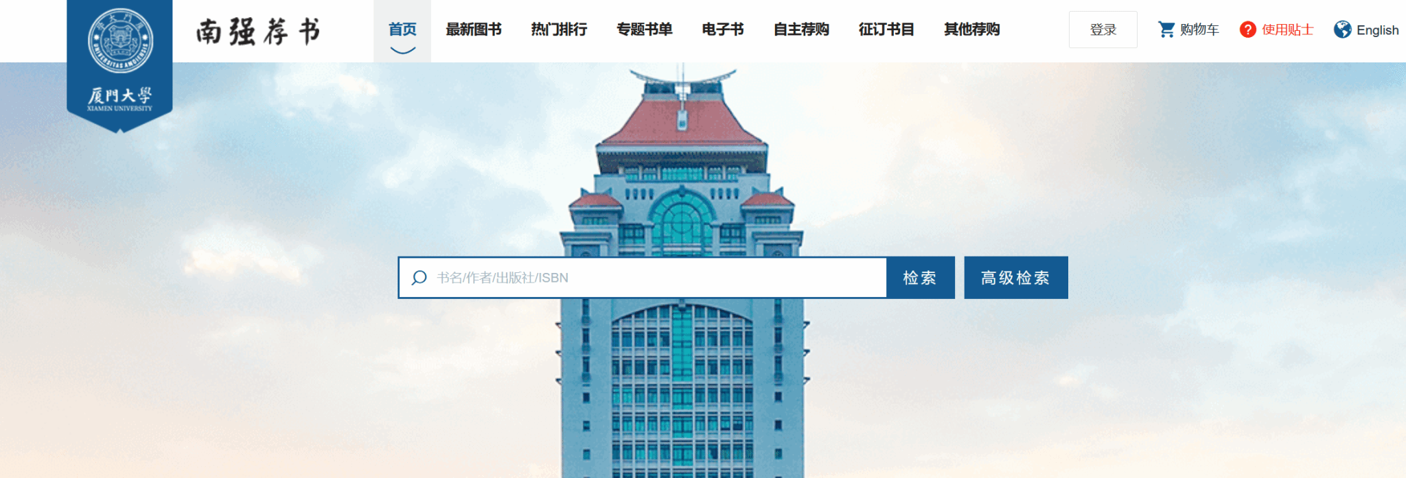 想读的书图书馆还没有?别急,新平台让资源采购更懂您!您可点击“南强荐书”链接跳转至南强荐书平台,该平台有百万种图书可供推荐。您可以在检索框搜索拟推荐采购的图书,也可以点击“最新图书”“热门排行”“专题书单”等栏目浏览感兴趣的图书,并在图书详情页点击图书荐购。