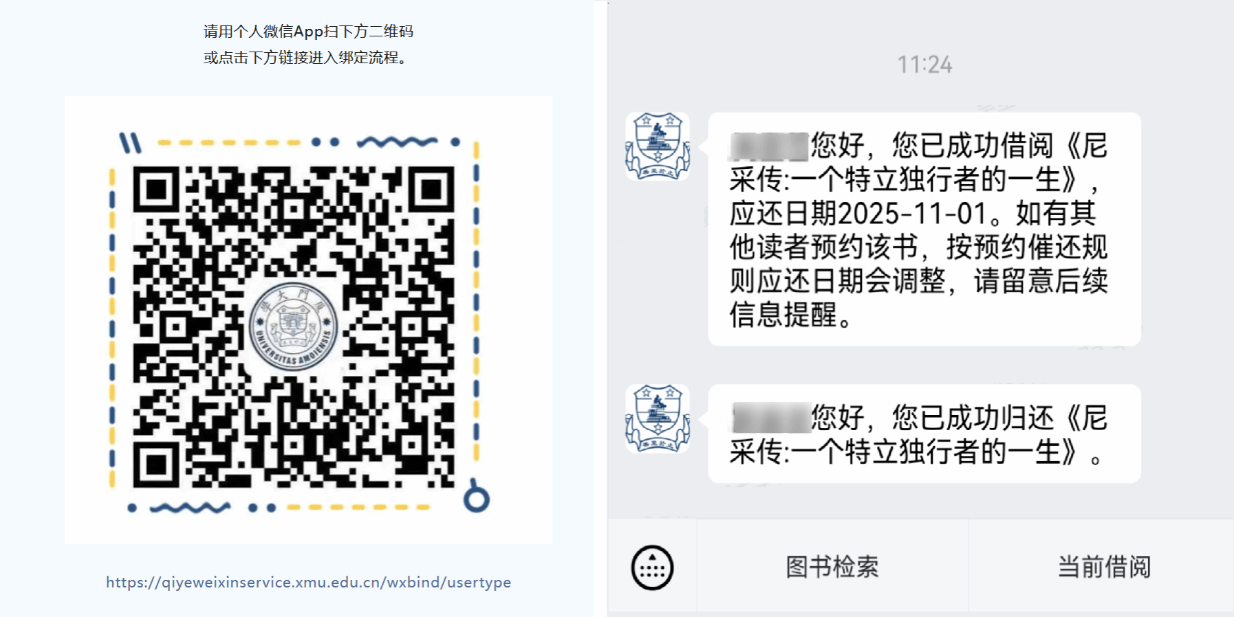 绑定成功后,图书借阅信息、图书到期提醒、预约/委托到馆通知等重要通知都会实时送达。无论是学习忙碌忘记还书,还是担心错过心仪书籍到馆,有了图书馆的这份 “专属提醒”,都能轻松化解,让您享受更省心、更及时的图书馆服务。