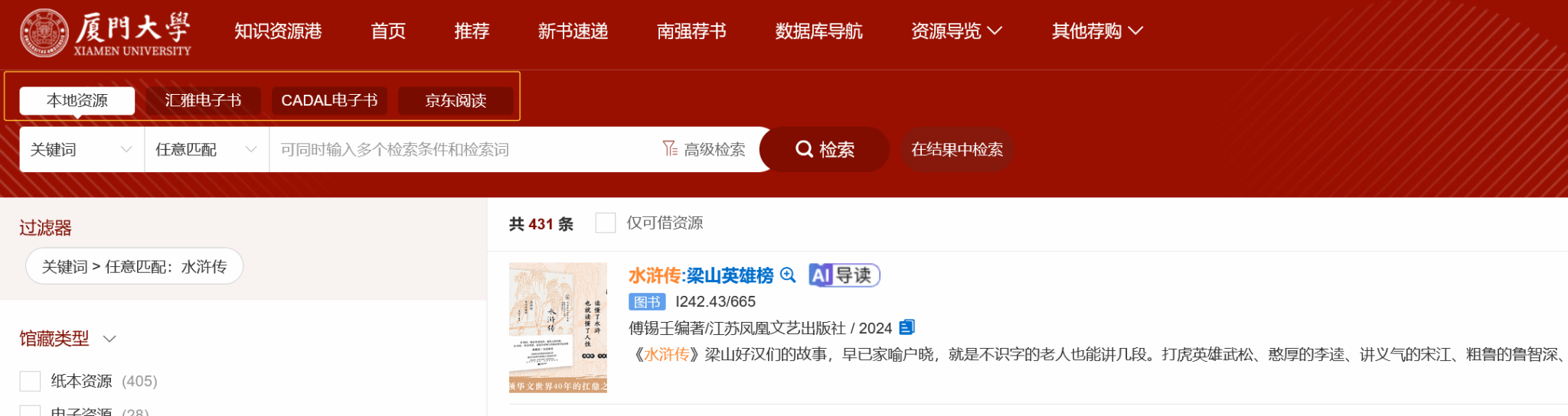 还在为纸质图书和电子图书分开查找而烦恼?升级后的新平台将本地馆藏纸质图书、汇雅电子书、CADAL电子书、京东阅读等多种类型的资源整合在一起,打破了纸质图书与电子图书孤立运行的状态,实现纸电图书的统一检索,您不用分别在不同的平台查找,一站式就能获取全面信息。