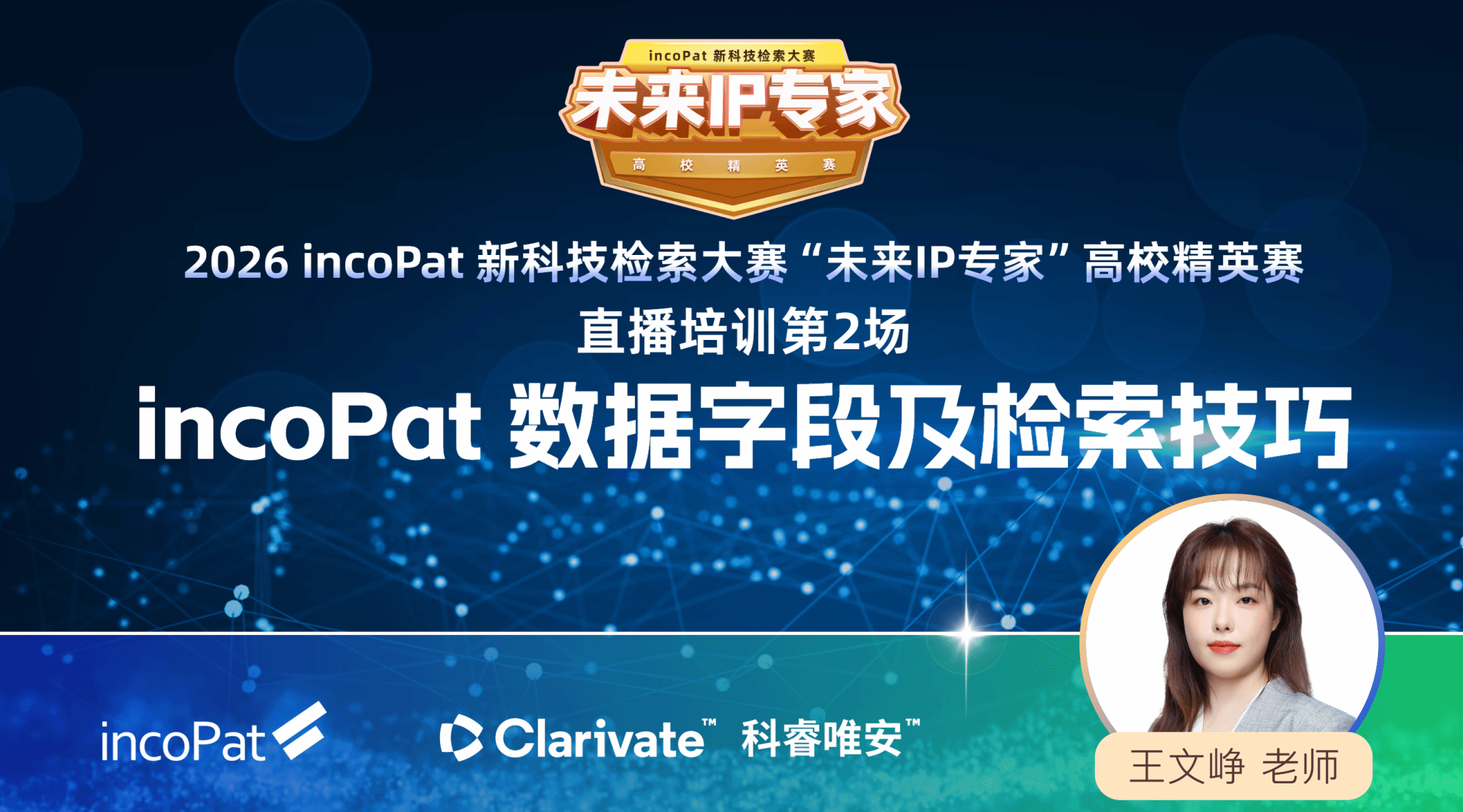 由于部分选手对于系统的使用尚不熟悉,我们特别邀请三位检索专家老师精心准备了三场赛前直播培训,从基础的专利检索介绍到高阶的检索技能分享,结合比赛真题解构分析,帮助选手们从基础入门到实战应用,全面提升专利信息检索能力。