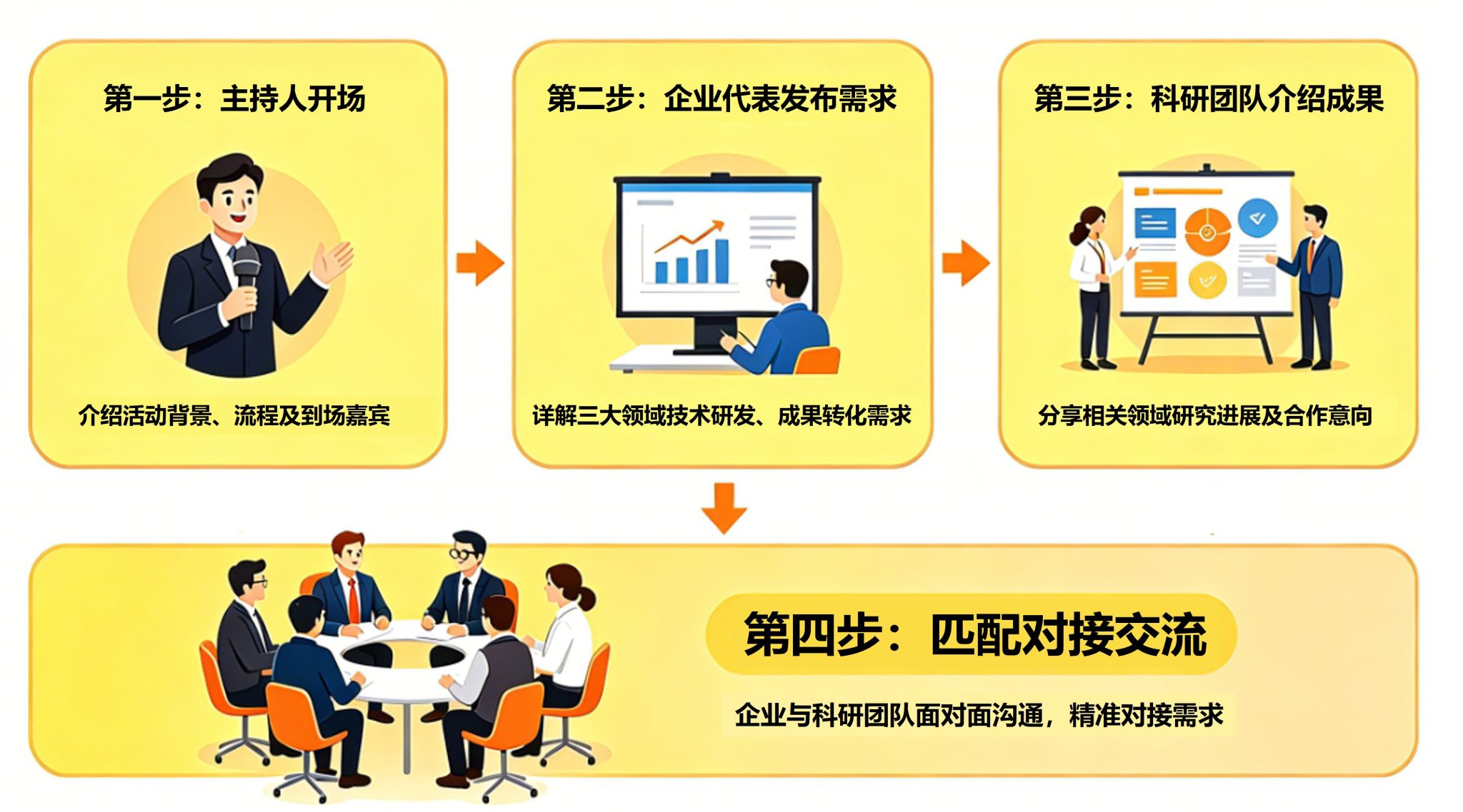 本次沙龙聚焦人工智能、智能装备、环保新材料三大重点领域,搭建校内课题组与泉州科技型企业的精准对接平台。通过四个环节,层层递进,高效打通校企沟通合作渠道。