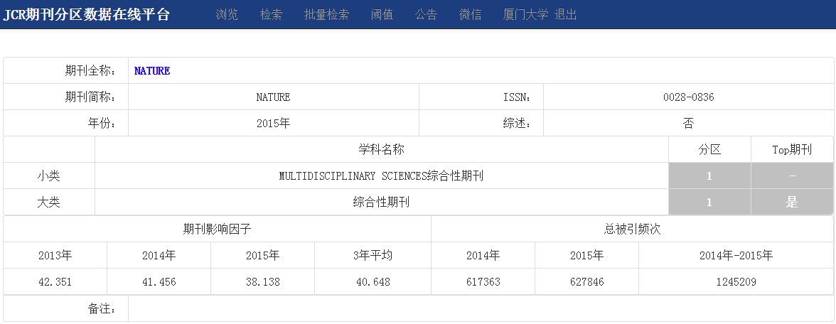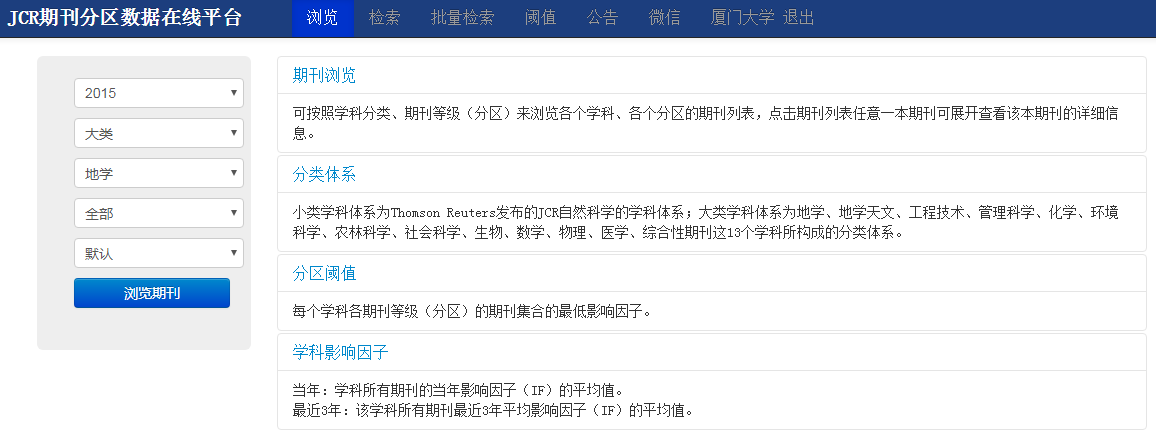 Step 1: Go to the homepage of Xiamen University Library, click "Resources"---"Chinese Database"---letter "J"---"JCR Journal Division Data Online Platform".