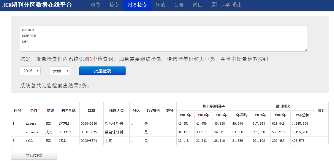 Step 3: After entering the database, if you search a single journal, select "Search"; if you search multiple journals, select "Batch Search".