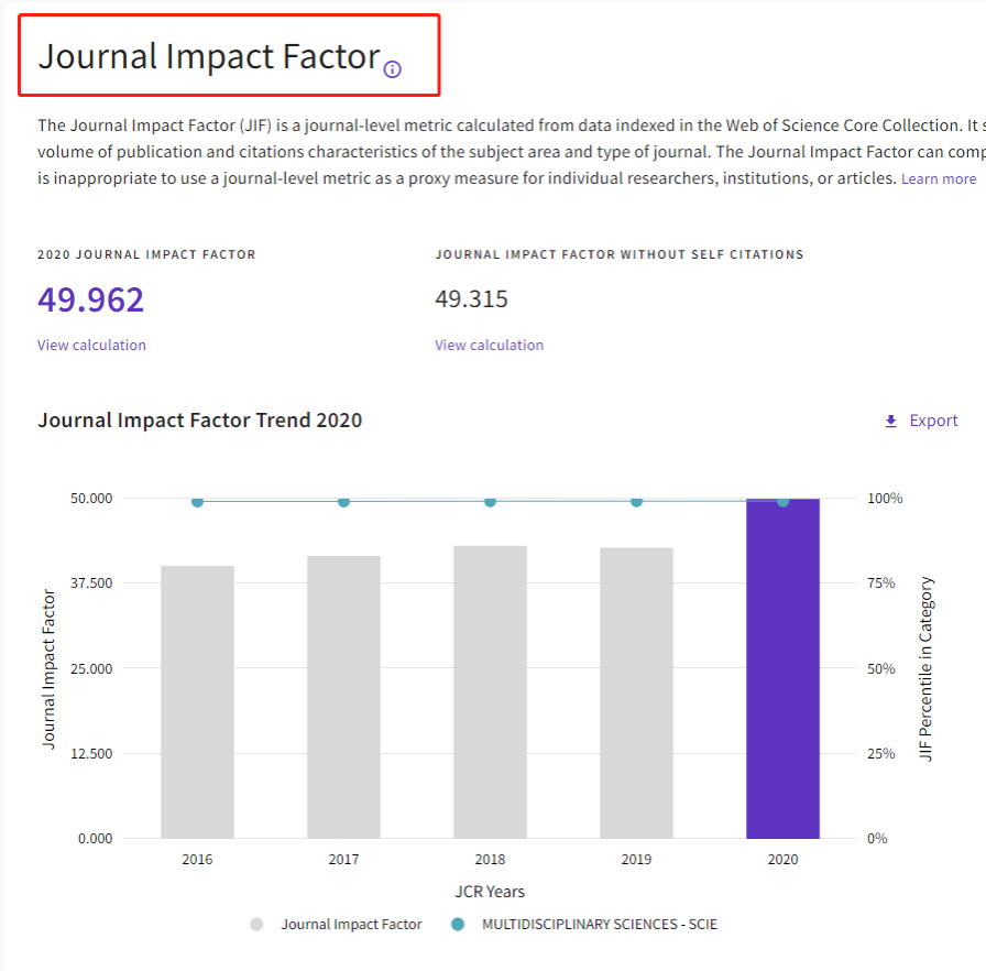 (4)Enter the journal evaluation page, pull down to see the journal's latest impact factor "Journal Impact Factor", and the histogram of the journal impact factor in the past five years.