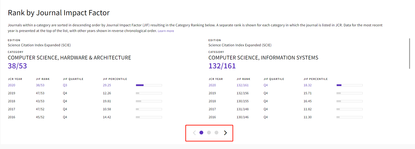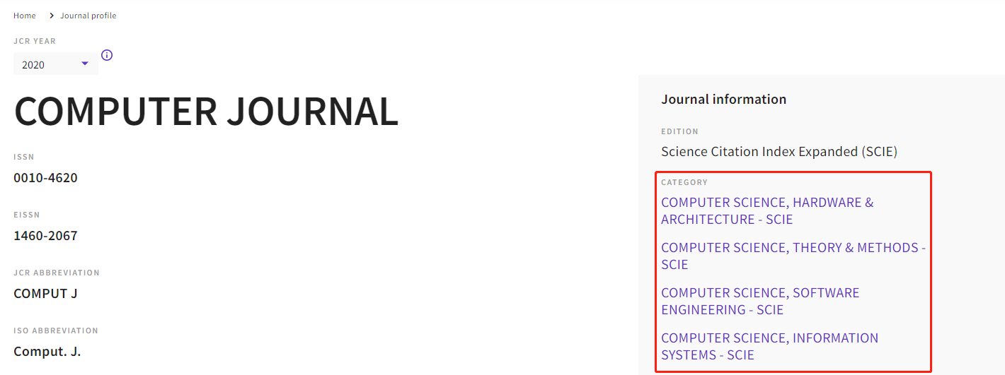 (6)The picture below shows the different annual divisions of COMPUTER JOURNAL. Journals belong to different WoS subject categories, and the corresponding divisions are also different.