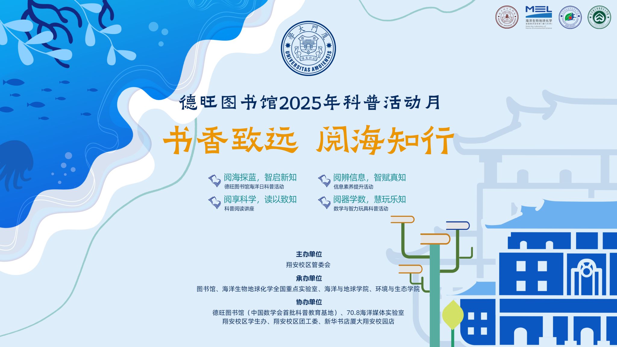 2025年9月,我国迎来首个“全国科普月”。为深入贯彻习近平总书记关于科技创新、科学普及和科学素质建设的重要论述,在厦门大学翔安校区管委会的大力支持和推动下,德旺图书馆联合海洋生物地球化学全国重点实验室、海洋与地球学院和环境与生态学院,于9月-10月重磅推出“书香致远,阅海知行”科普活动月。