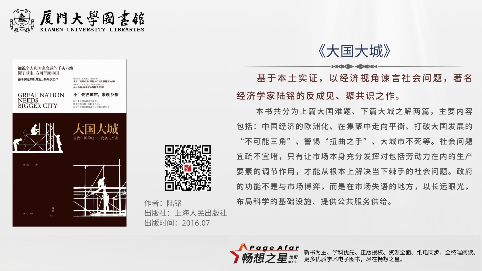 内容简介:用经济学手术刀解剖“北上广困境”,破除“控制大城市规模”的认知误区。作者提出“在集聚中走向平衡”,用人口流动数据证明:真正的公平,是让农民工在陆家嘴获得同城待遇。
