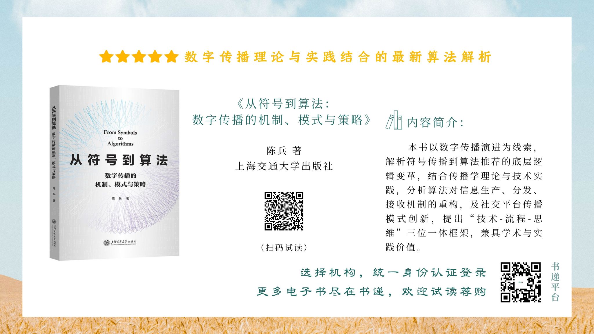 本书以数字传播演进为线索,解析符号传播到算法推荐的底层逻辑变革,结合传播学理论与技术实践,分析算法对信息生产、分发、接收机制的重构,及社交平台传播模式创新,提出“技术-流程-思维”三位一体框架,兼具学术与实践价值。