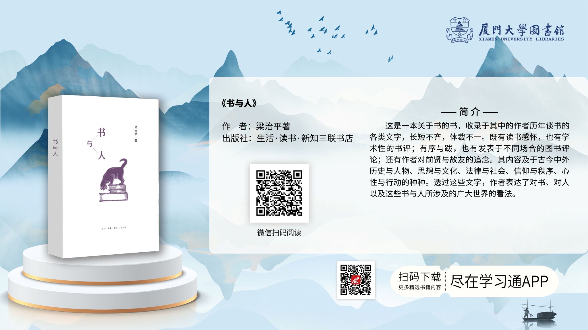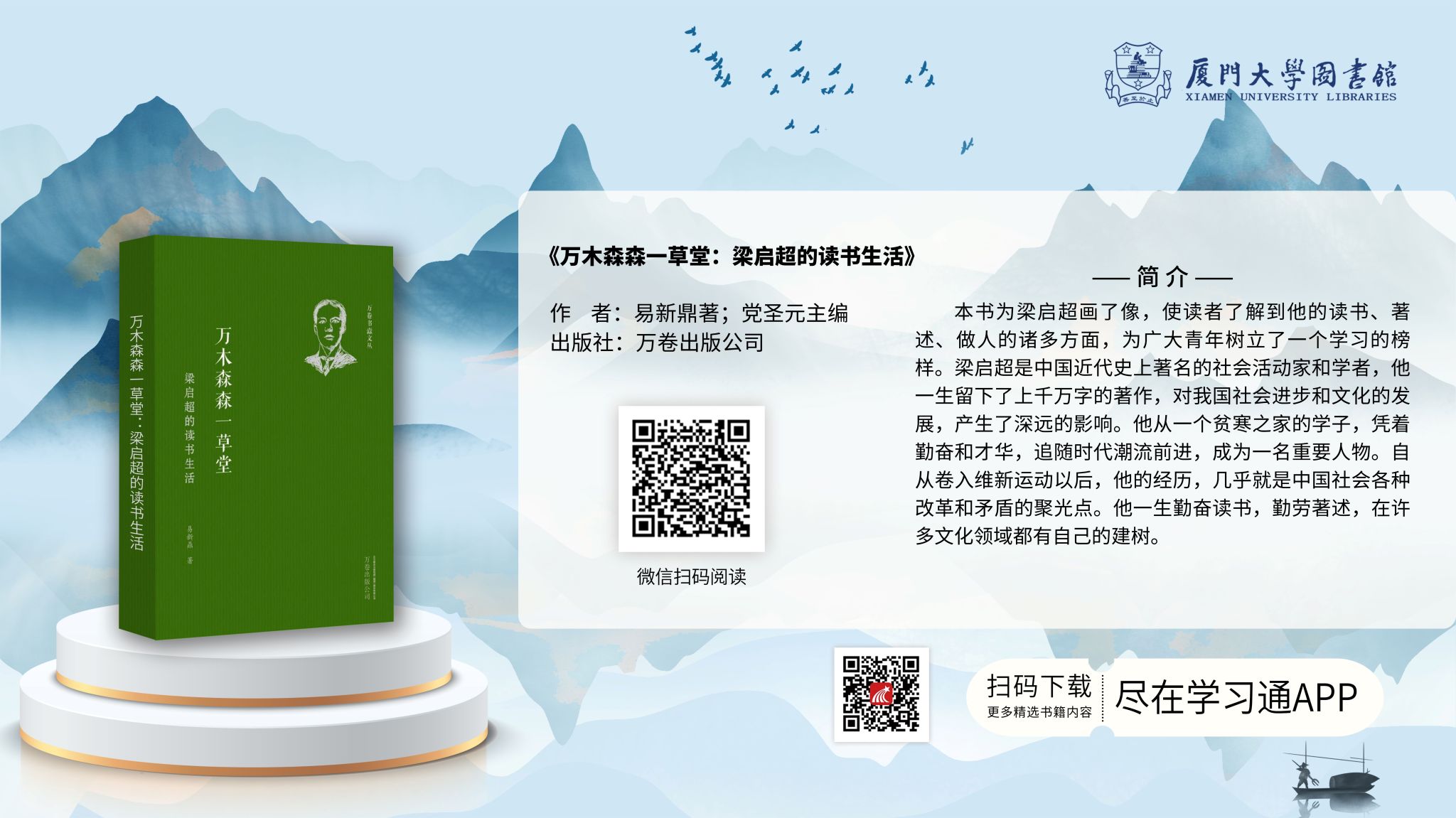 “世界读书日”即将到来,图书馆精选一批与阅读有关的电子图书推荐给大家。本期图书由超星公司编选,讲述了梁启超、胡适、侯仁之、苗怀明、梁治平、蔡颖卿的读书故事,探讨了“书与人”之间的美妙联系。