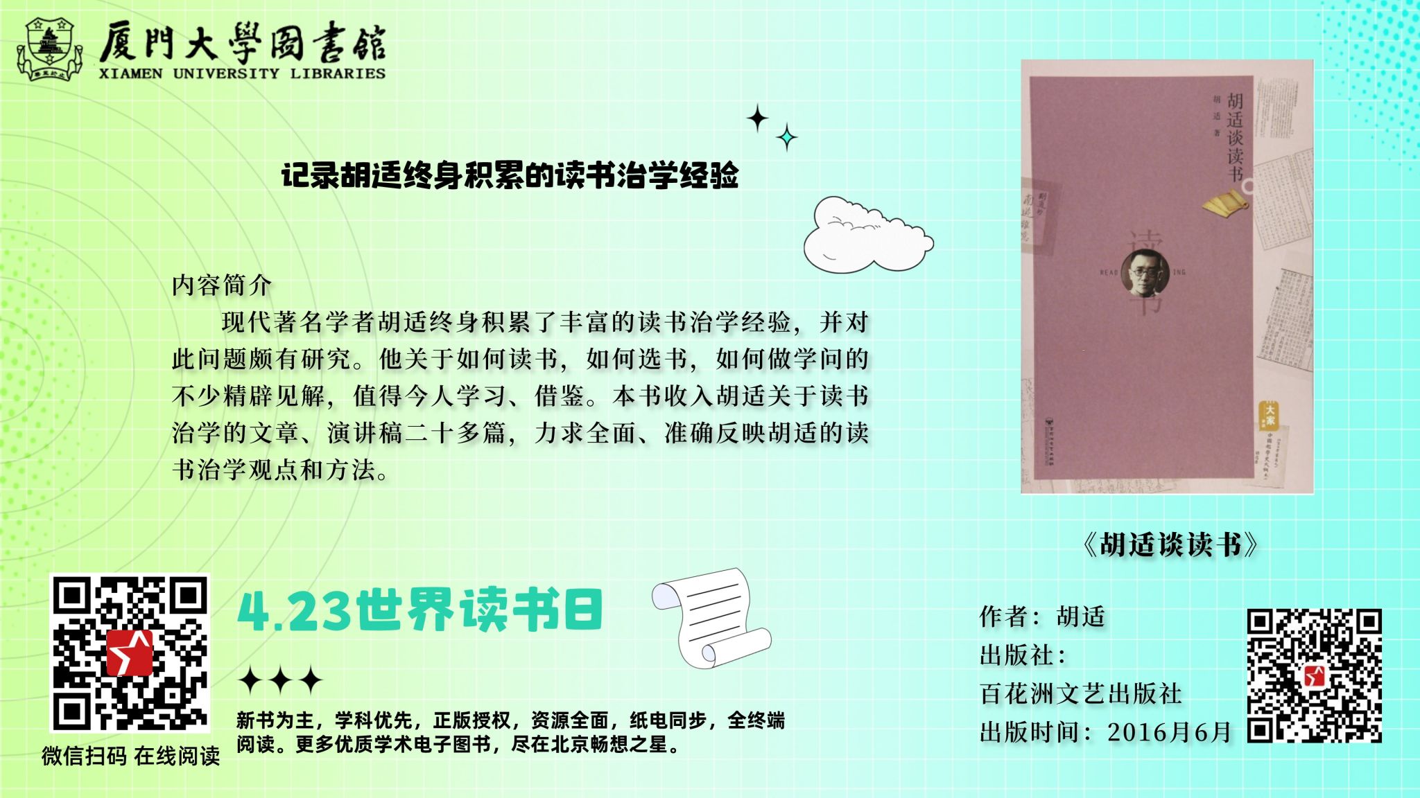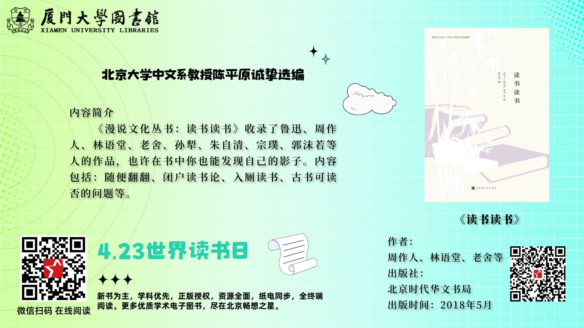 “世界读书日”即将到来,图书馆特别推荐一系列关于读书的电子书,本期书目由“畅想之星”提供。