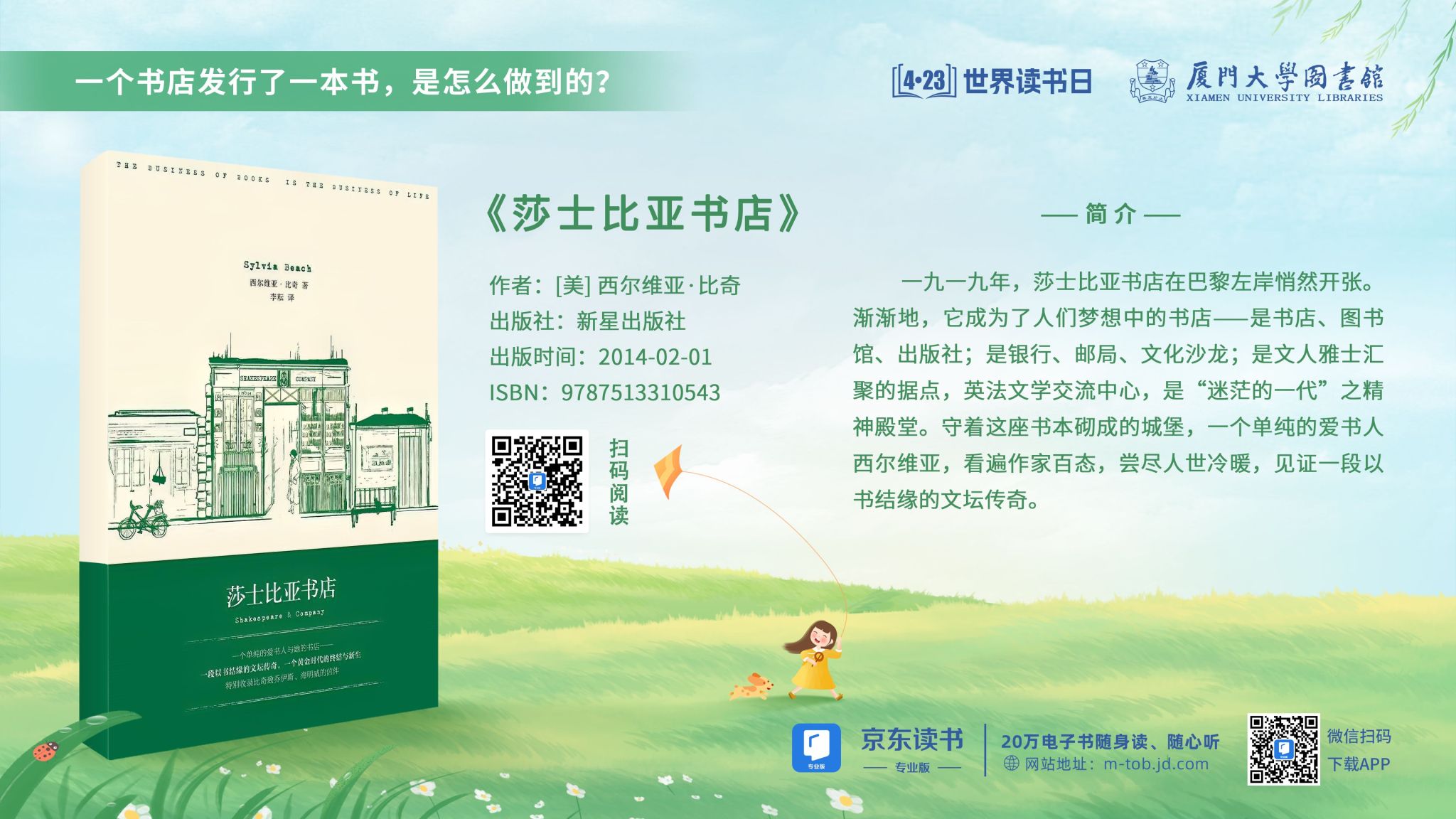 一九一九年,莎士比亚书店在巴黎左岸悄然开张。西尔维亚以率直风趣的文笔,将繁华热闹的左岸风景徐徐展开:乔伊斯禁书《尤利西斯》的出版盛况;安塞尔《机械芭蕾》的疯狂演出;海明威解放迪皮特朗街的神勇英姿;醉酒差点跳下楼的菲兹杰拉德,拿乌龟捉弄人的纪德……守着这座书本砌成的城堡,一个单纯的爱书人西尔维亚,看遍作家百态,尝尽人世冷暖,见证一段以书结缘的文坛传奇。