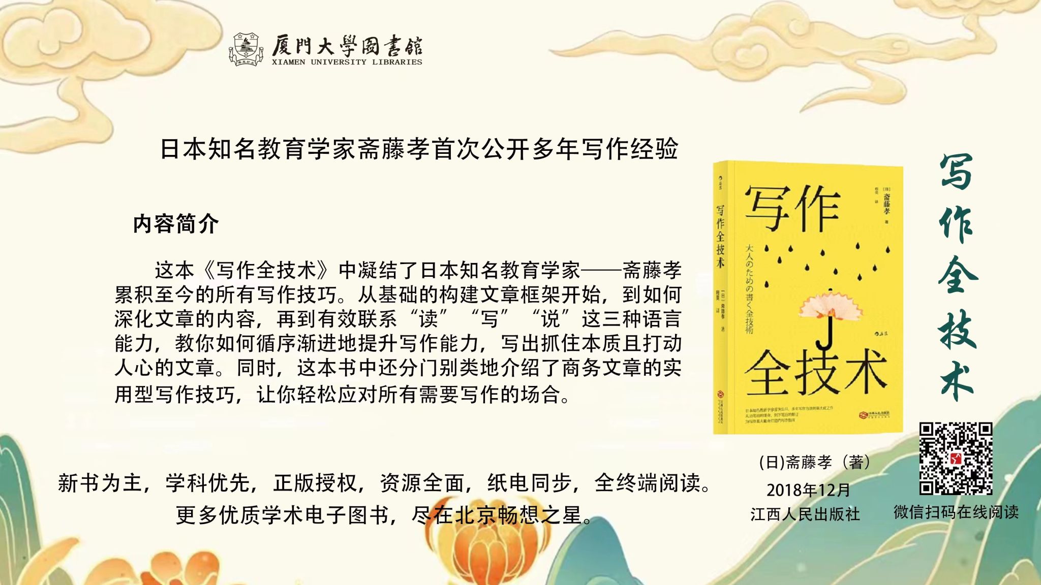 新学期的序幕缓缓拉开,图书馆为大家准备了一份特别的礼物——关于论文写作的系列电子图书: