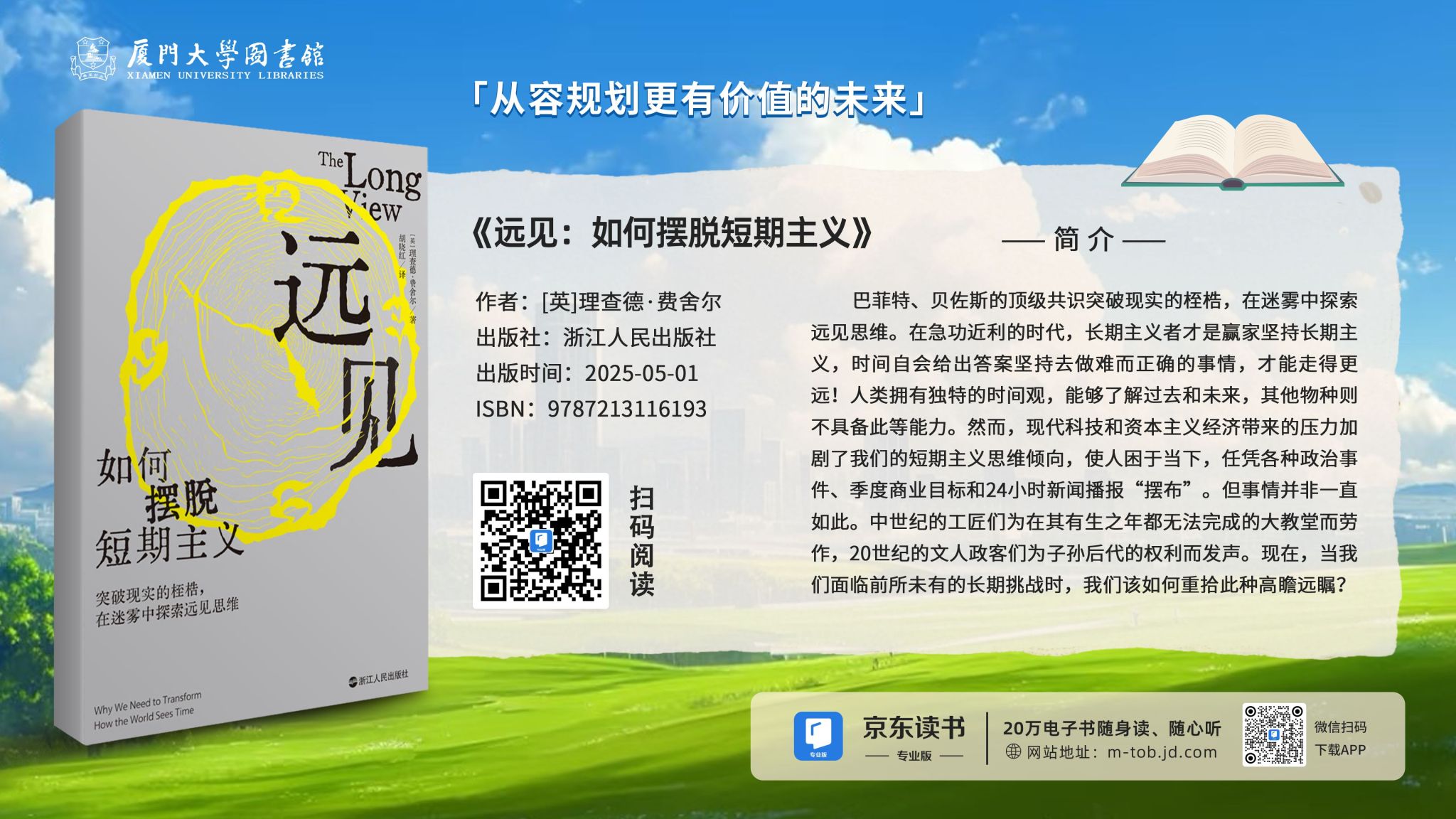 书籍简介:人类拥有独特的时间观,能够了解过去和未来,其他物种则不具备此等能力。然而,现代科技和资本主义经济带来的压力加剧了我们的短期主义思维倾向,使人困于当下,任凭各种政治事件、季度商业目标和24小时新闻播报“摆布”。但事情并非一直如此。