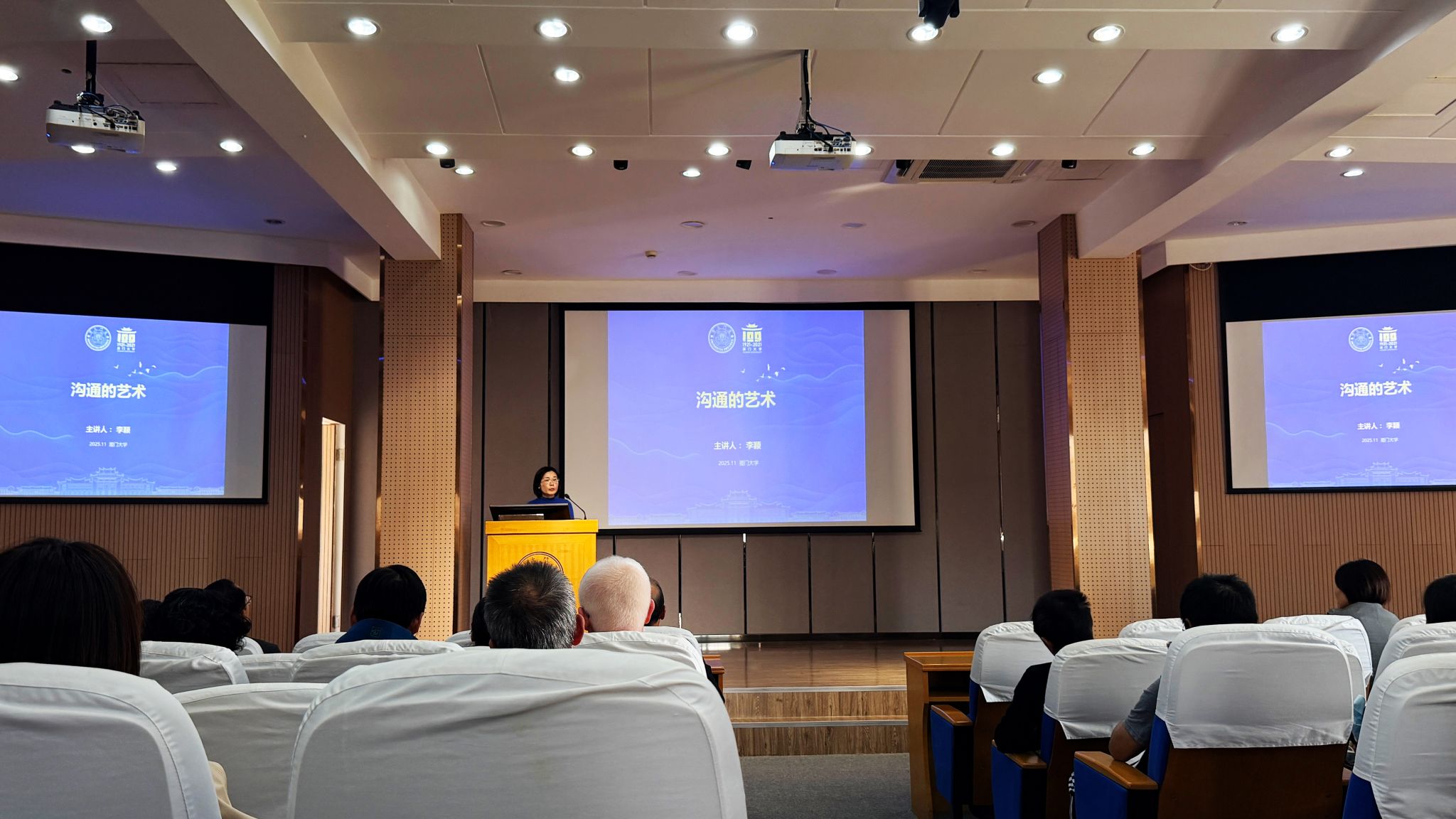 随后,海韵学生公寓分馆馆员、国家二级心理咨询师李颖为大家带来《沟通的艺术》的分享报告。她结合工作实际,重点介绍了影响有效沟通的“十二个绊脚石”,并通过生动案例与互动交流,深入浅出地讲解了如何识别并克服沟通障碍,提升沟通效率与质量。报告内容贴近实际、实用性强,引发了在场馆员的广泛共鸣与深入思考。
