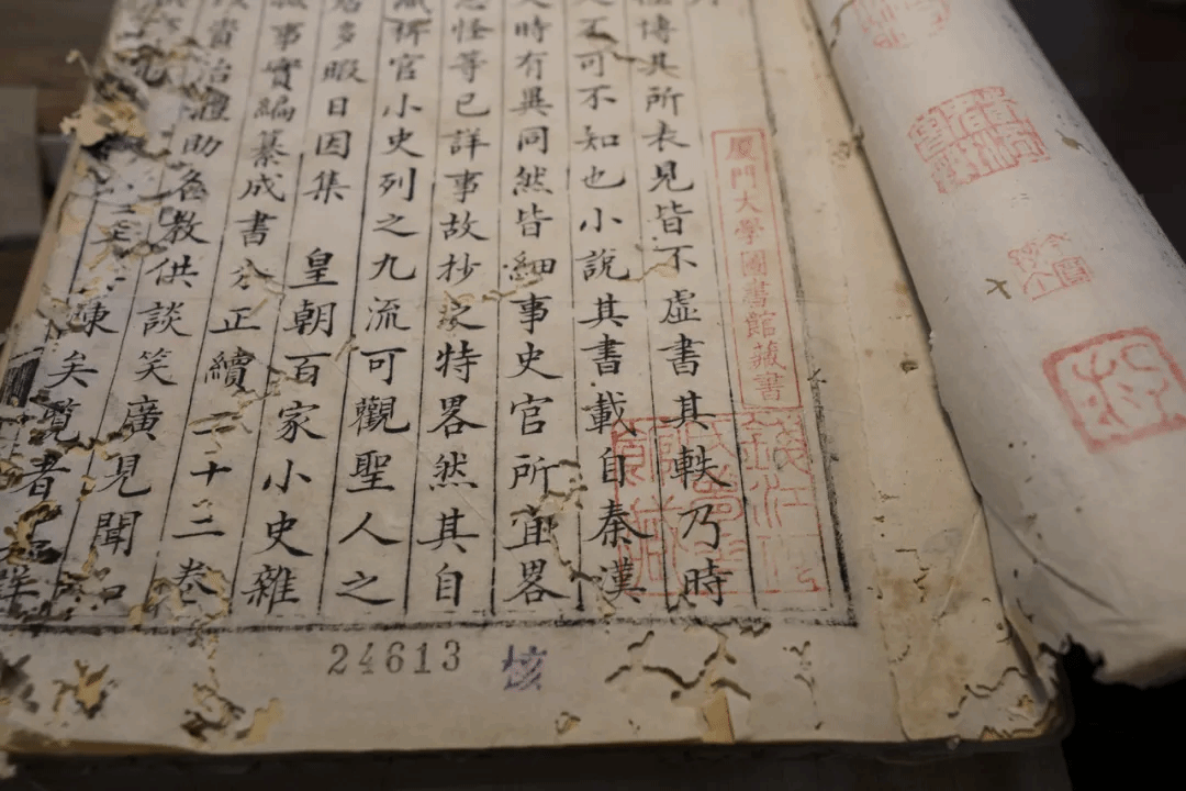 ▲厦大图书馆藏二十二卷《云麓漫钞》,棉纸十行黑格抄本,五函三十册(此书破损严重,现已列入本馆古籍修复计划)