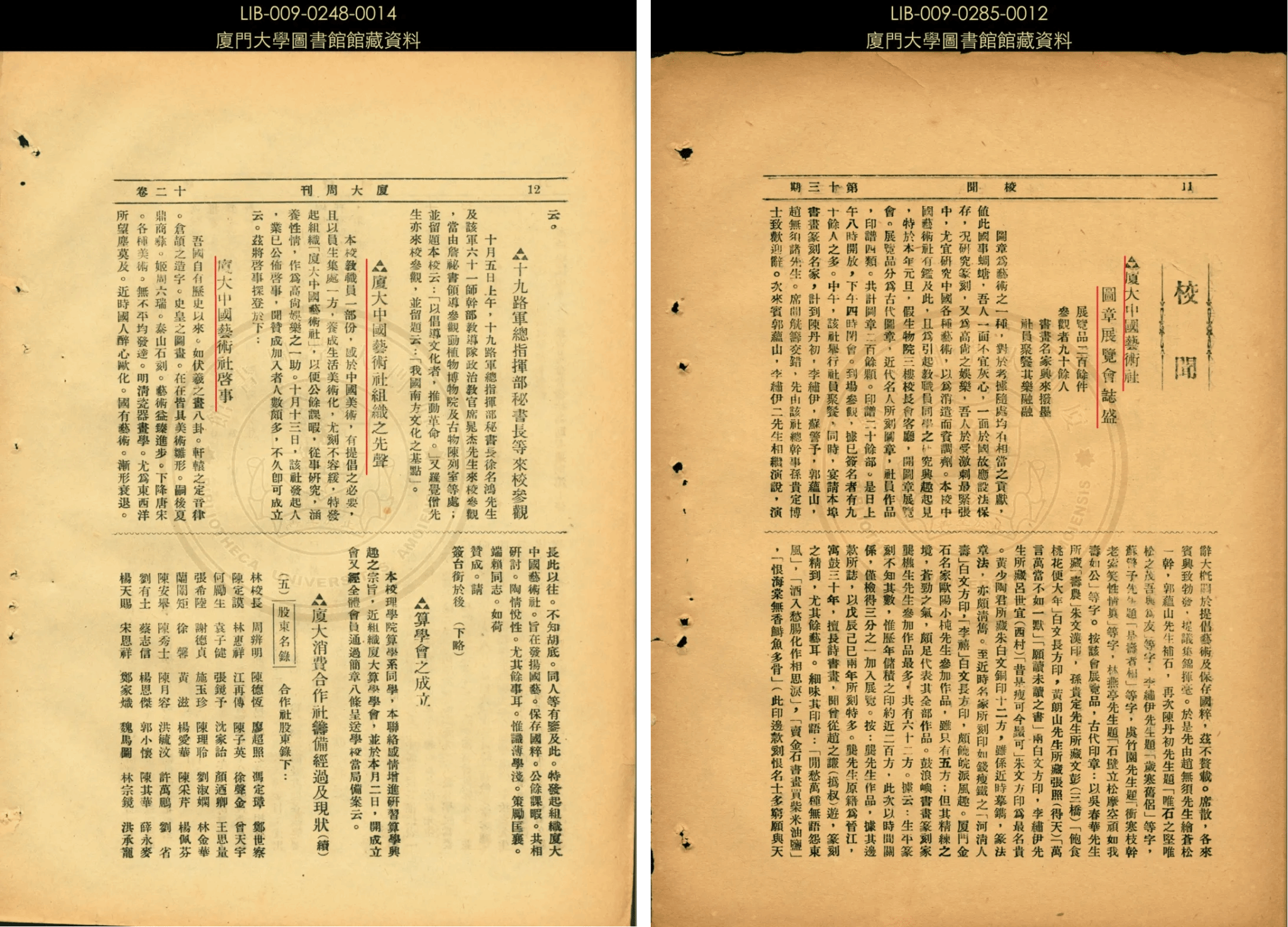 右:《厦大周刊》1934年第331期刊登《厦大中国艺术社图章展览会志盛》