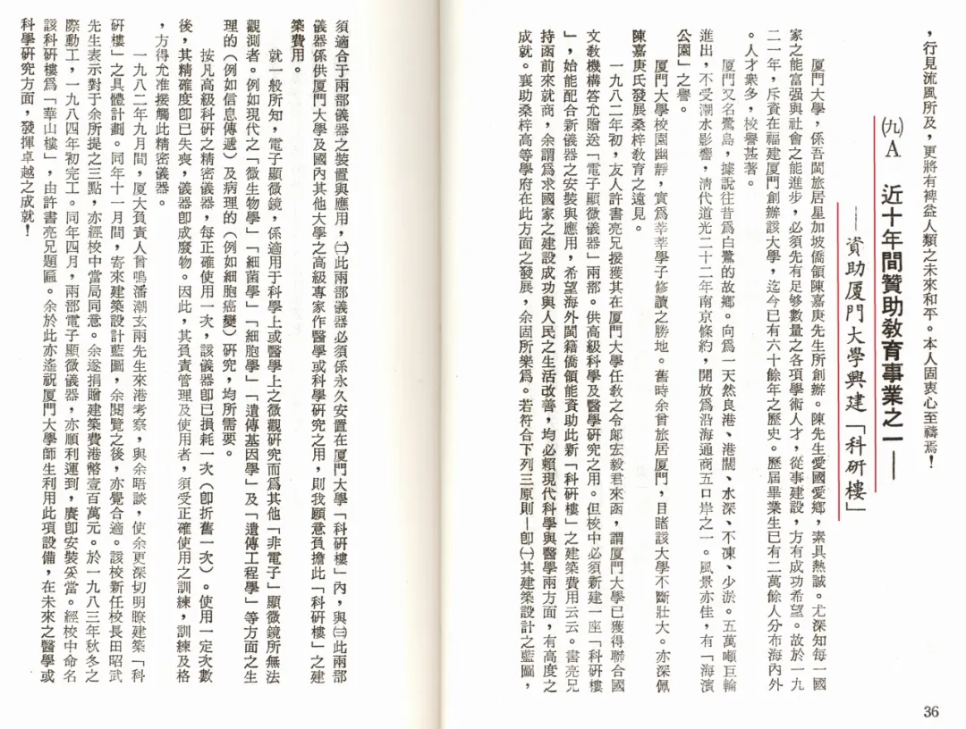 ▲《桂华山九十忆述》收录《近十年间赞助教育事业之一 ——资助厦门大学兴建“科研楼”》