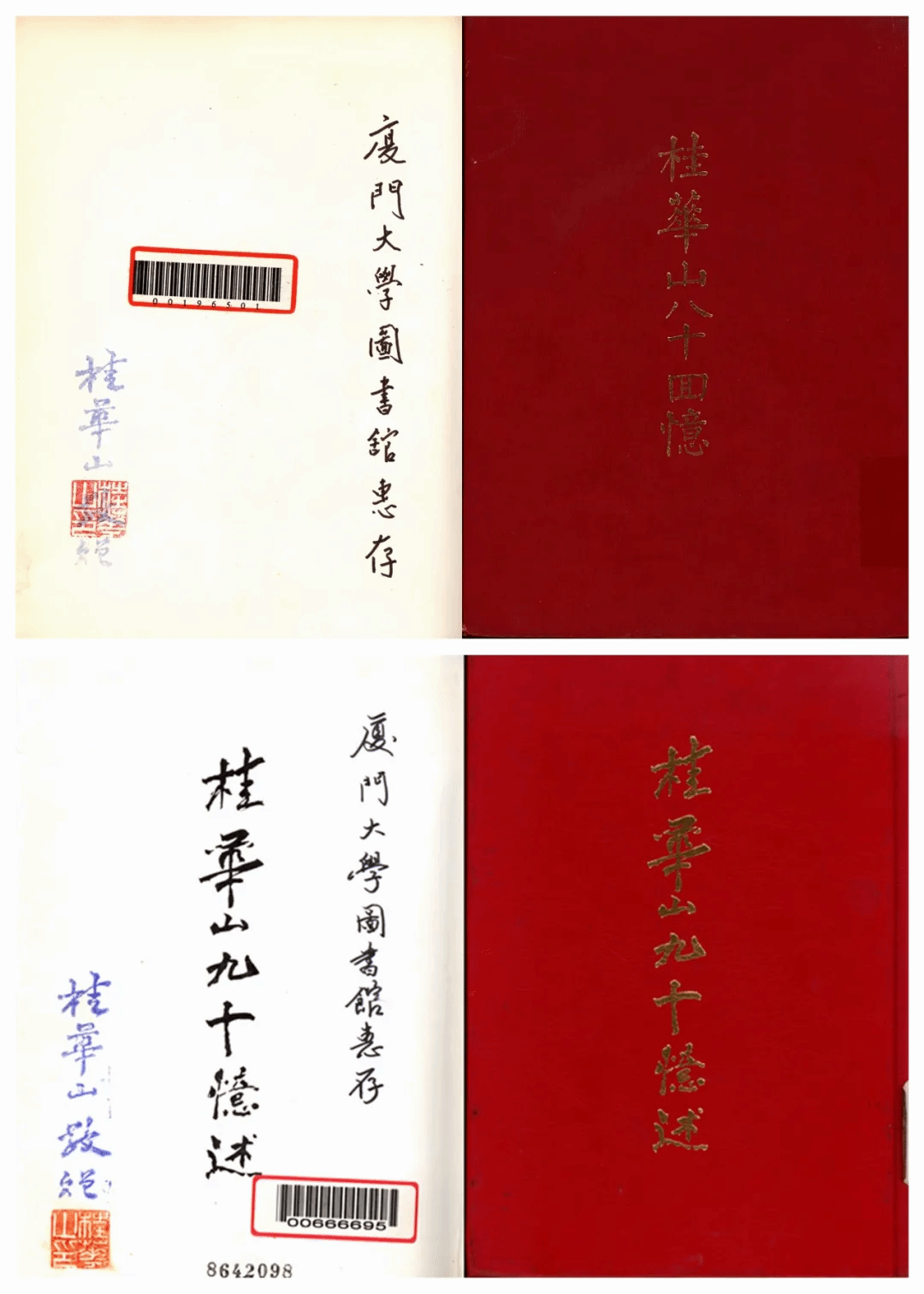 厦大图书馆藏有三种桂华山回忆录,均为作者签名或钤印捐赠本。