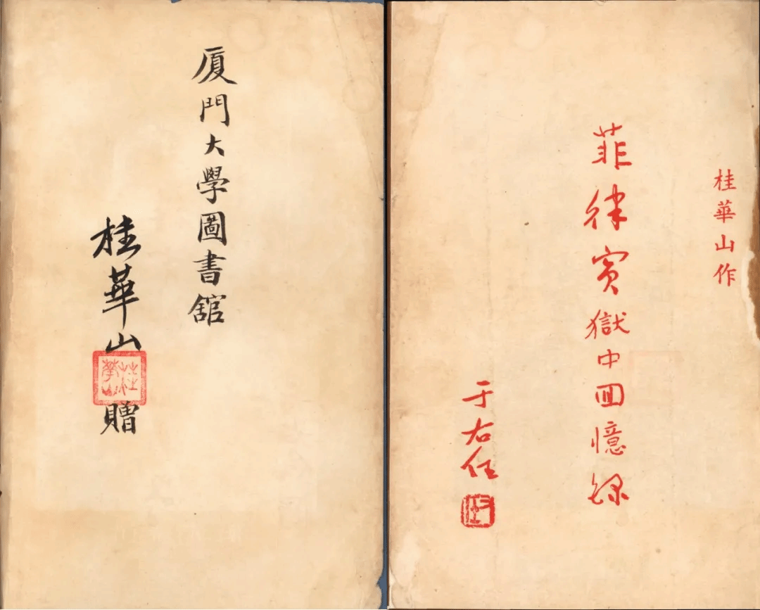 桂华山的人生履历甚为丰富,早年投身革命,晚年兴办实业,从某种意义而言是中国近现代华侨奋斗史和爱国史的缩影。其三种回忆录具有较高的文献价值,尤以《菲律宾狱中回忆录》最具特色。1942年,日本帝国主义侵占菲律宾,同年5月26日,桂华山因爱国反日而被日本宪兵拘捕,在狱中坚贞不屈,被判处20年徒刑。次年10月24日,日本因庆祝成立菲律宾伪政权而大赦,桂华山提前出狱。抗日战争胜利后,桂华山将这段“菲岛沦陷期间被敌囚禁之经历”记述下来,意在保存太平洋战争爆发后日本侵略者的暴行和爱国华侨坚贞不屈的英勇事迹,是为1947年刊印的《菲律宾狱中回忆录》。众所周知,校主陈嘉庚撰著《南侨回忆录》(1946年初版),是为其1943年至1945年躲避日寇、在印尼避难时所写的回忆录,是研究二战时期东南亚华人华侨史的重要文献。桂华山《菲律宾狱中回忆录》亦为同时期形成的“抗战史料”,无疑对相关领域的研究具有重要价值。