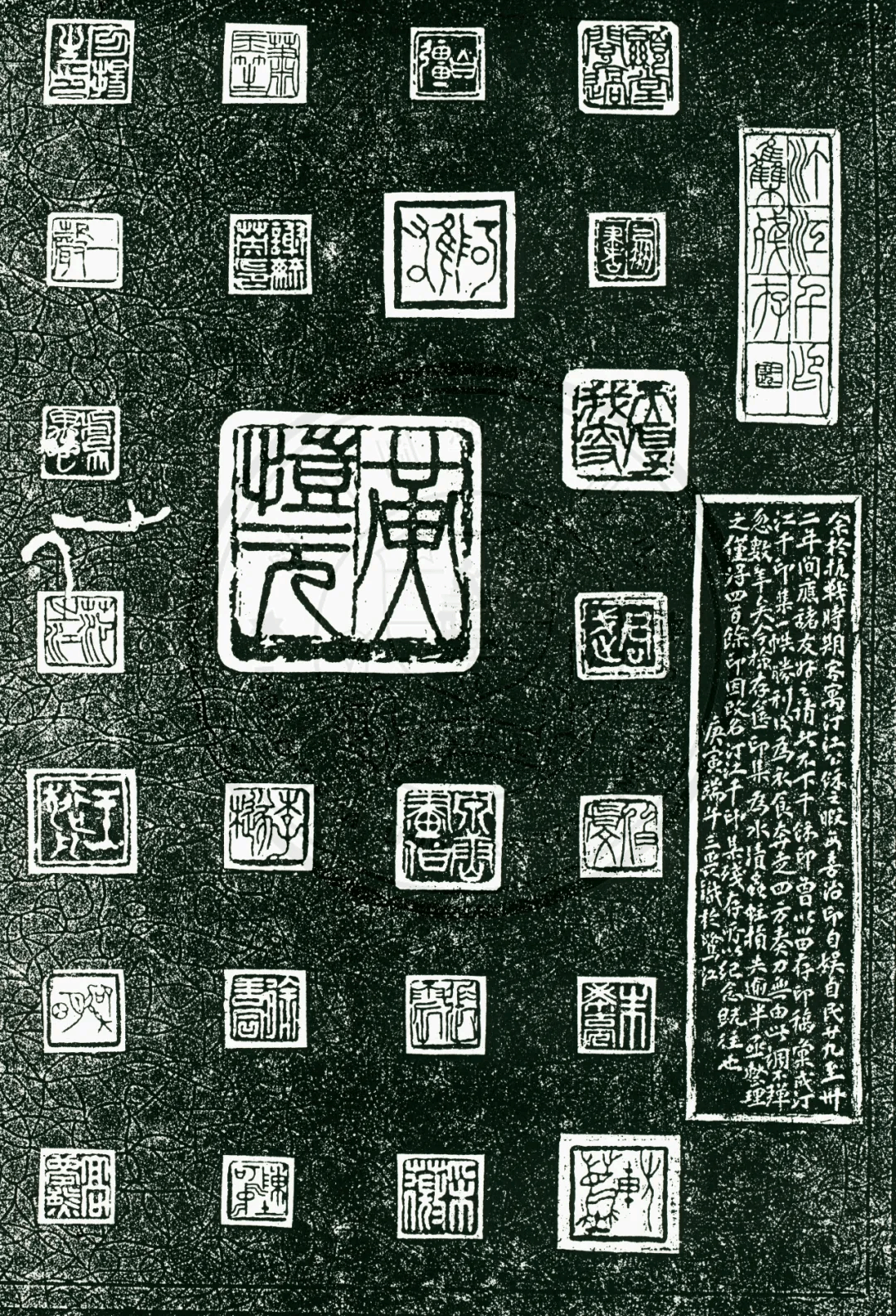 ▲《了斋书法篆刻存稿》“汀江千印集残存”。 右侧边款释文:“余于抗战时期客寓汀江,公余之暇每喜治印自娱。自民廿九年至卅二年间,应诸友好之请者不下千余印,曾以留存印稿汇成《汀江千印集》一帙。胜利后为衣食奔走四方,奏刀无由,此调不弹,忽数年矣。今检存箧印集为水渍虫蛀,损失逾半,亟整理之,仅得四百余印,因改名《汀江千印集残存》,所以纪念既往也。 庚寅端午 三畏识于鹭江”。