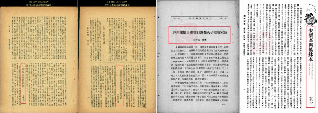 o 张秀民《评四库总目史部目录类及子部杂家类》,《文华图书科季刊》1930年第2卷第1期,收入全国报刊索引库