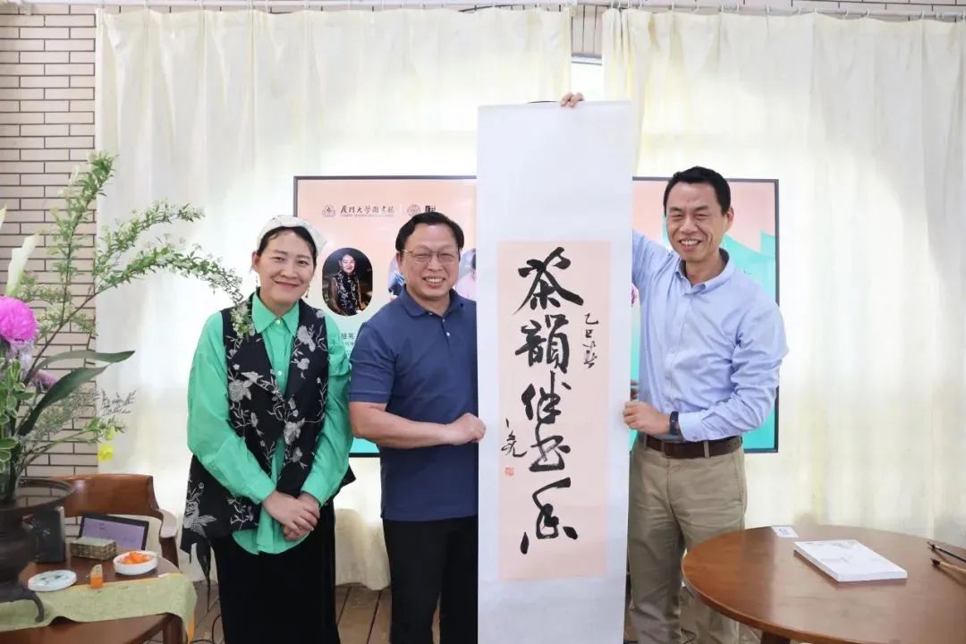 此次茶会更有厦大校友、厦门文联党组成员、副主席王元老师现场挥毫,留下“茶韵伴书香”墨宝佳作,开启了整个茶会的序章。