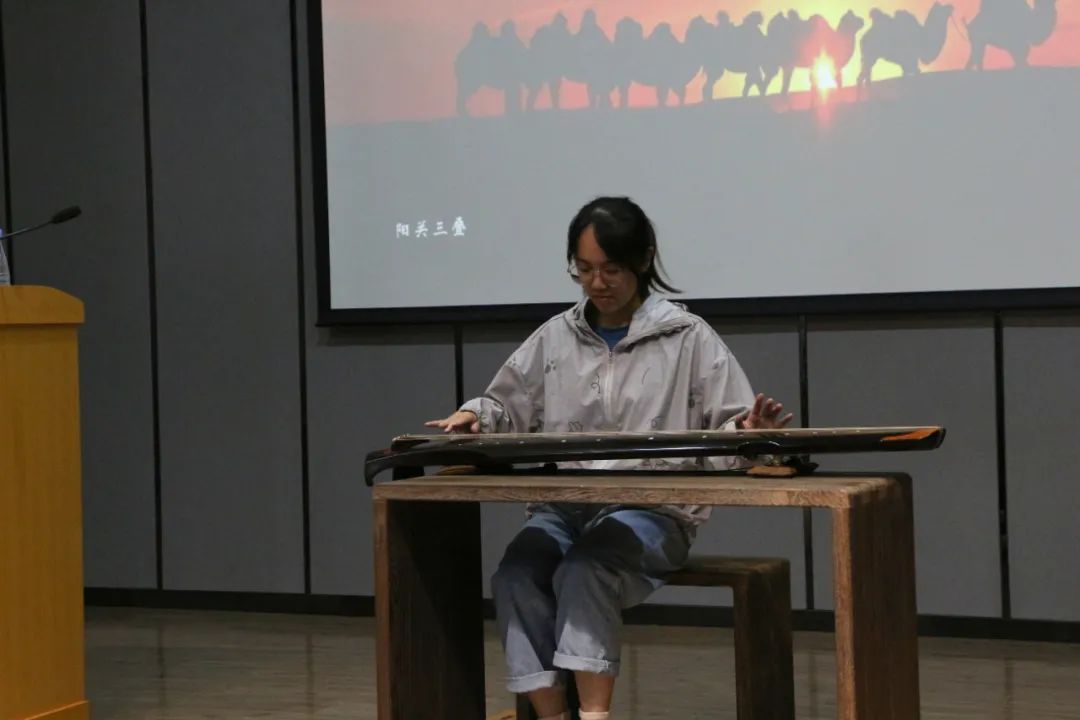 在古琴开场之后,王老师也让台下的听众充分参与到这场活动中。 听众们有机会上台亲手试奏勾挑抹剔,感受古琴的魅力。 这增强了讲座的互动性,也为观众们带来了更好的体验。