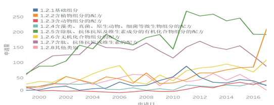 图1.2.2牙膏IPC小组分类申请趋势